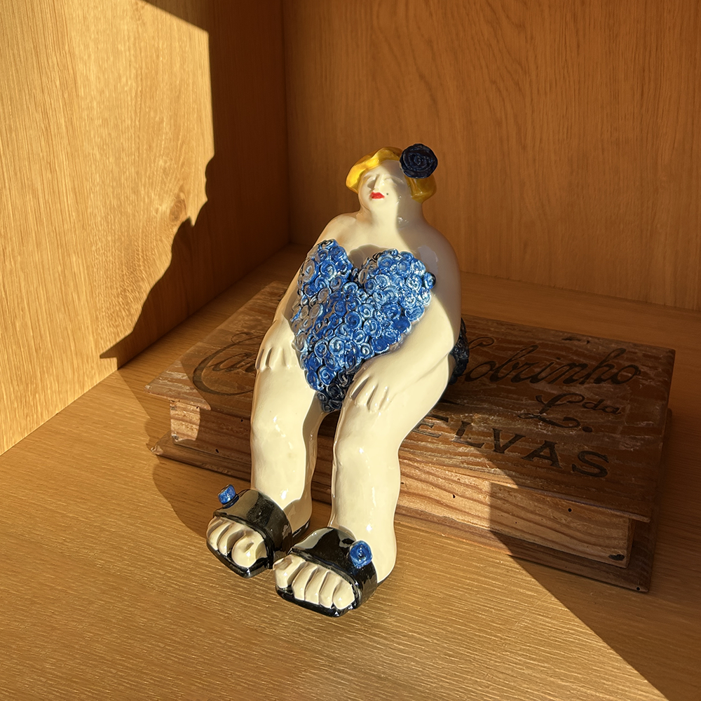 Florinda the Bather, created by Portuguese ceramist Álvaro Santos, is a ceramic piece inspired by the iconic bathers of the 1950s and 1960s. Handcrafted, each sculpture combines tradition, humor, and cultural memory.