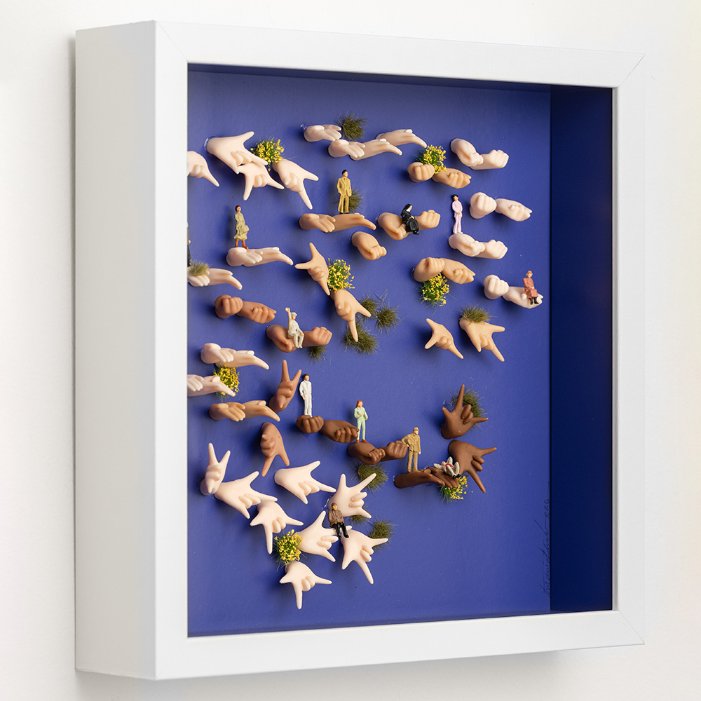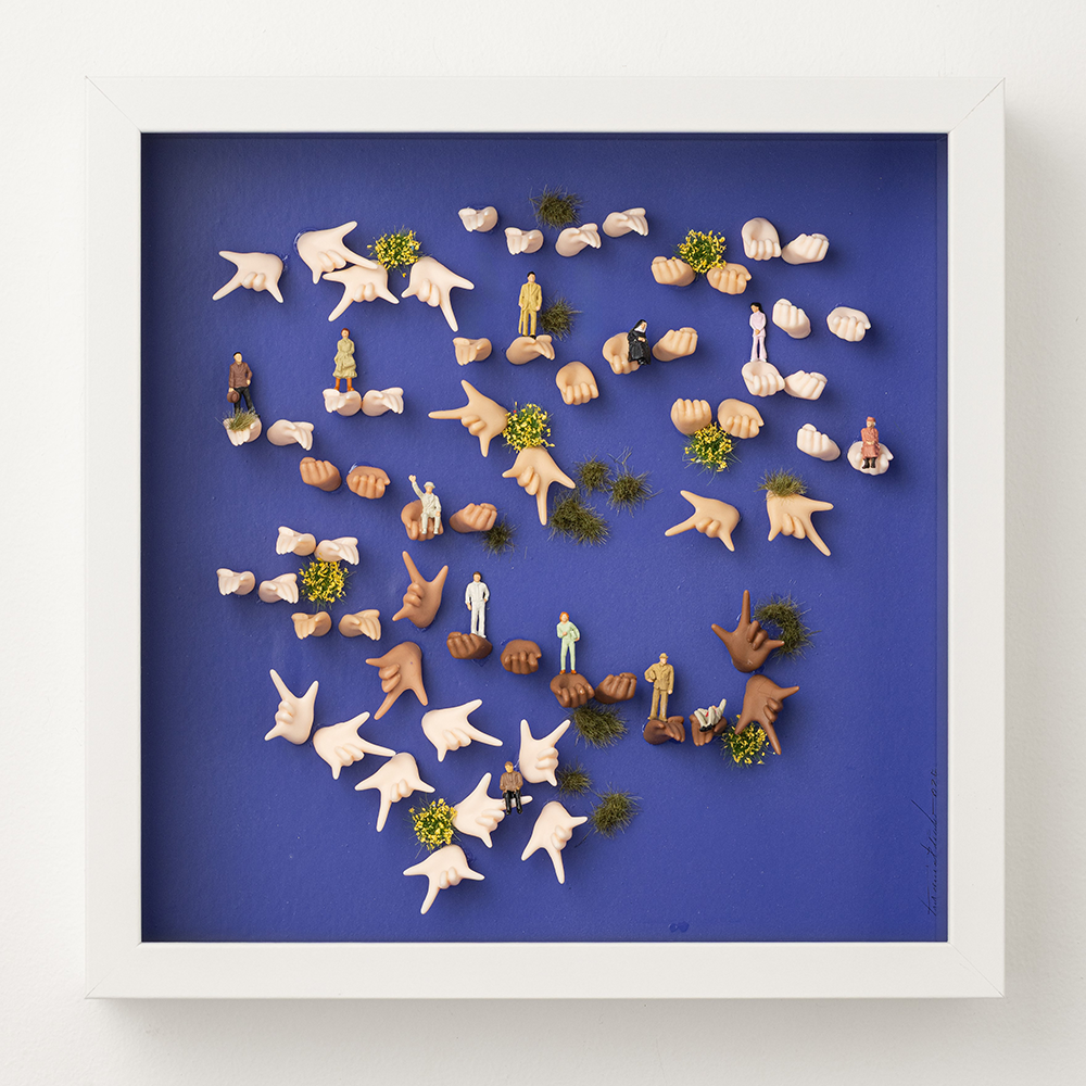 Peça única criada a partir da assemblagem de vários materiais, onde miniaturas ganham vida em cenários poéticos e inesperados.